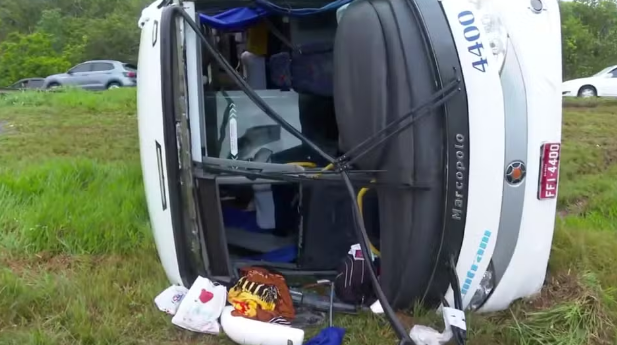 Dez pessoas ficaram feridas após um ônibus tombar na BR-324, na cidade de Candeias, na Região Metropolitana de Salvador, na madrugada desta segunda-feira (25). De acordo com o Corpo de