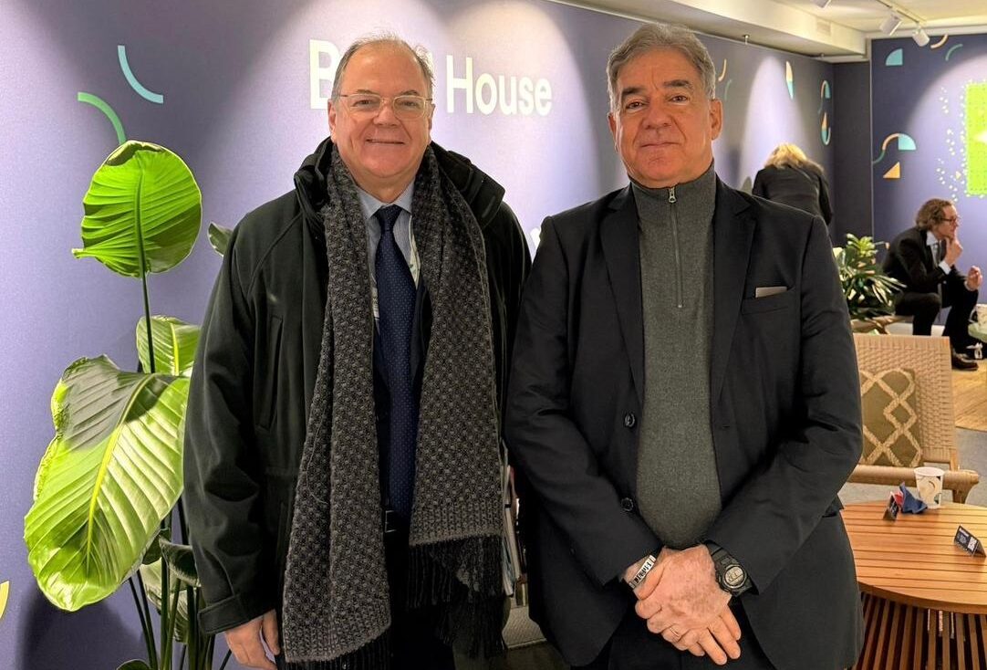Zé Neto reúne-se com embaixador do Brasil na Suíça e junto à União Europeia, Guilherme Patriota, no Espaço Casa Brasil (Brazil House), em agenda oficial no Fórum Econômico Mundial 2026,