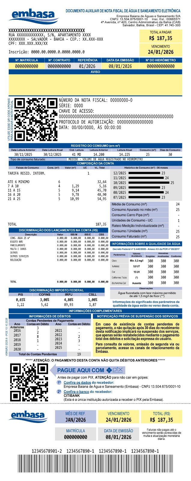 Ao contrário do que está sendo divulgado em vídeos, a conta da Embasa realmente mudou e começou a chegar aos baianos neste mês de janeiro. O layout foi atualizado e