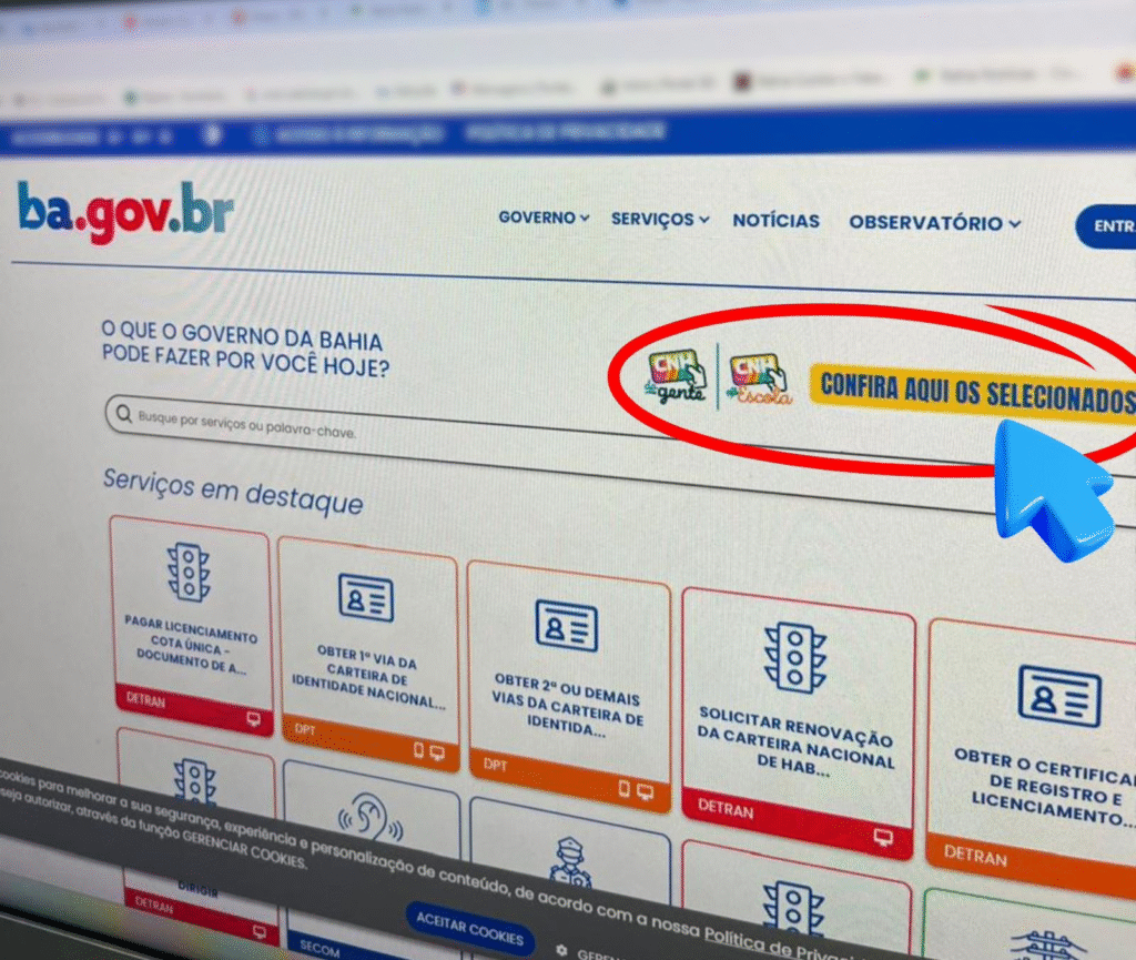 Já estão disponíveis as listas dos selecionados nos programas CNH da Gente e CNH na Escola. Para consulta, o candidato deve acessar o portal BA.GOV.BR (ba.gov.br/comunicacao/cnhdagente/resultado). O Governo do Estado, através do Departamento Estadual de Trânsito (Detran-BA) disponibilizou 12 mil vagas – sendo duas mil para estudantes do ensino médio da rede pública estadual, cinco mil vagas destinadas a estudantes 18+ inscritos no programa Bolsa Presença, mil vagas destinadas a jovens atendidos pelo programa Bahia pela Paz, 50 vagas para atendimento às famílias vítimas da explosão na fábrica de fogos em Santo Antônio de Jesus, além de 3.950 vagas para a população cadastrada no CadÚnico.