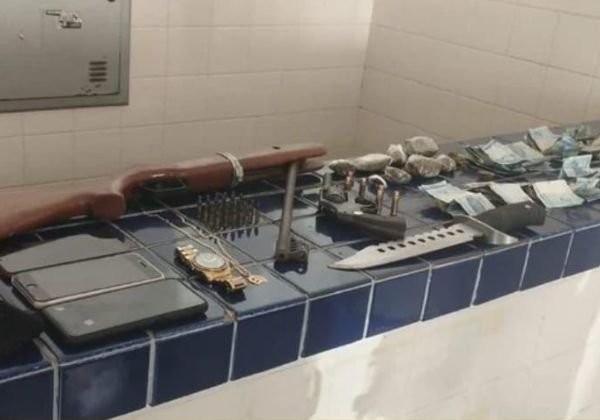 Os policiais realizavam patrulhamento quando receberam informações de que um indivíduo comercializava droga na região. Após realizarem as rondas, eles localizaram o suspeito e durante a abordagem e busca no perímetro encontraram um revólver calibre 38 e seis munições, uma espingarda de fabricação artesanal e uma de ar comprimido, 29 munições calibre 22, oito porções de maconha, três celulares, um relógio e uma corrente dourada, uma faca de caça, chumbo, pólvora, balaclava e dinheiro em espécie.